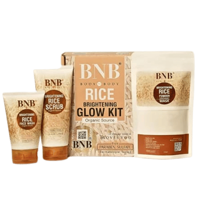 Elevate your skincare regimen with our BNB Rice Extract Whitening Bright & Glow Kit. Formulated with premium rice extract, this sophisticated collection gently illuminates your complexion while diminishing uneven tone. Experience the time-honored brightening benefits of rice combined with advanced skincare science for a luminous, refined radiance that speaks of understated elegance.