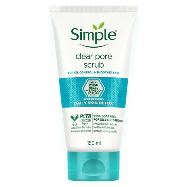 "Unlock clearer, smoother skin with Simple Clear Pore Scrub, your go-to solution for deep cleansing and exfoliation. Infused with gentle yet effective ingredients, our scrub targets clogged pores, removes impurities, and helps prevent future breakouts. Experience a refreshed complexion and renewed confidence with our dermatologist-tested formula. Say hello to a brighter, clearer complexion with Simple Clear Pore Scrub."